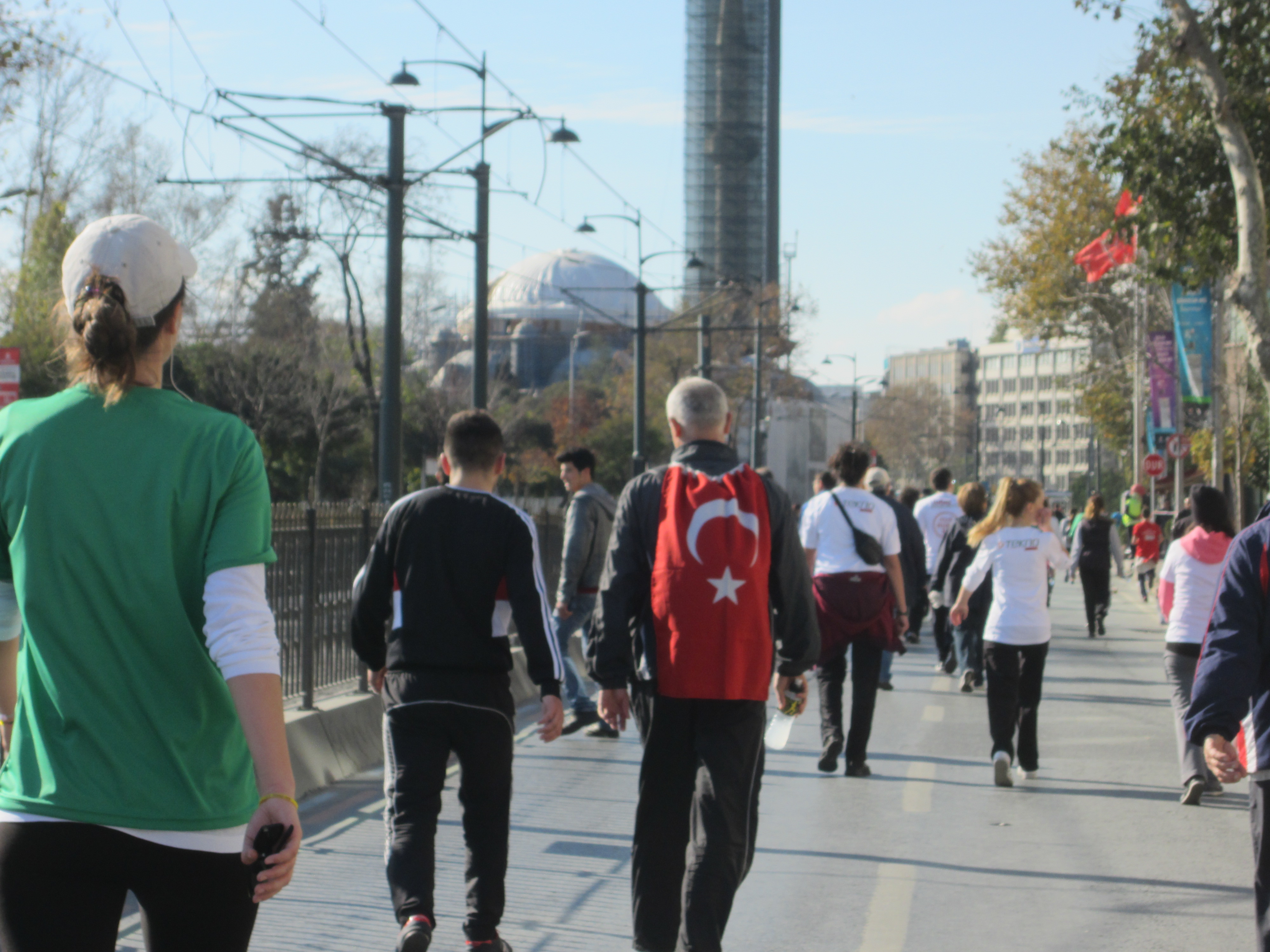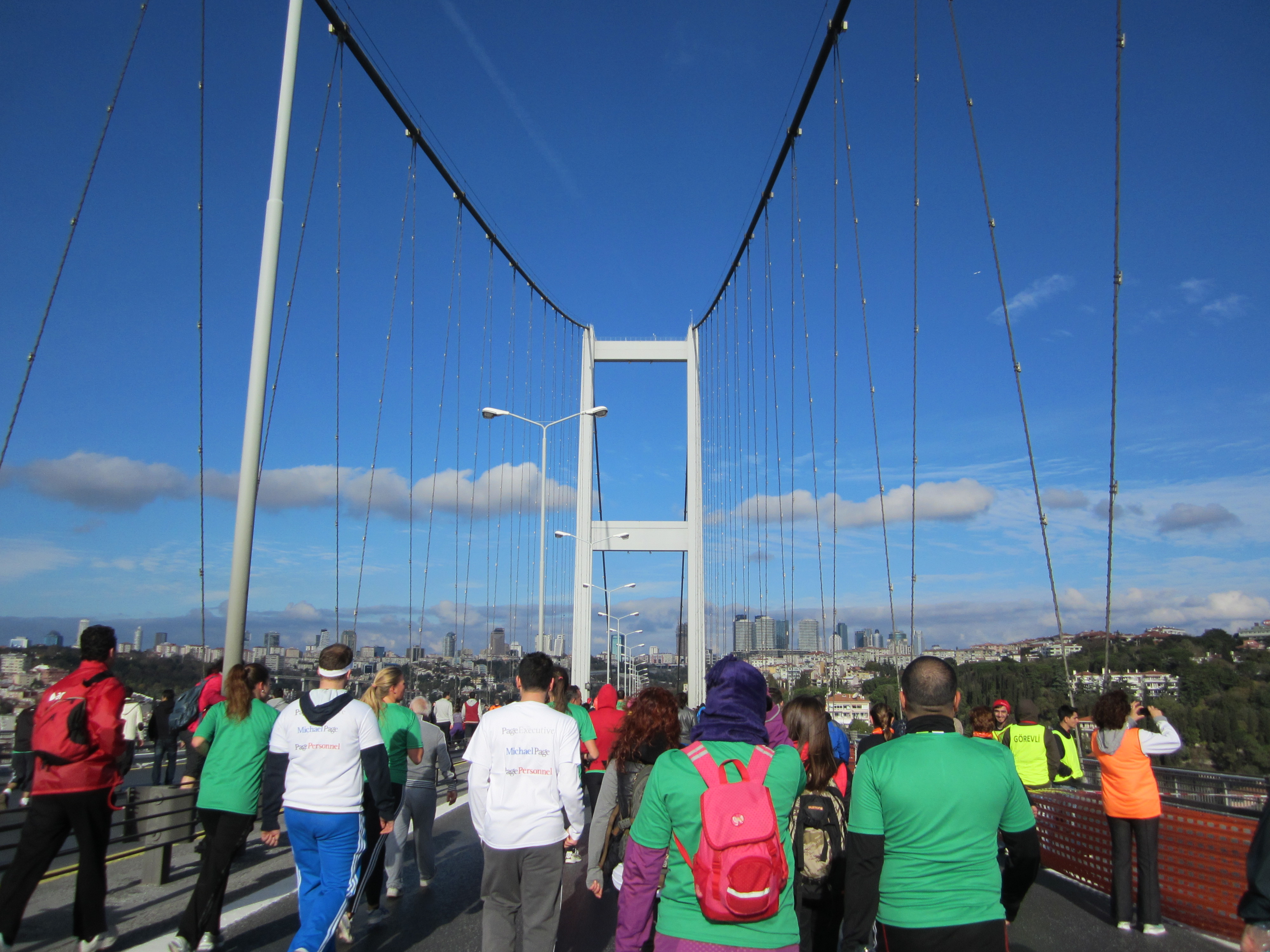 The race started on the Asian side of the Bosphorus bridge, allowing runners to enjoy the breathtaking view of the Bosphorus, stepping foot in Europe, along the elegant Dolmabahce Palace where our great leader Ataturk passed away 75 years ago, past Galata bridge crossing the Golden Horn where fishermen were cheering on the runners, ending in Eminonu, the heart of the walled city of Constantine.