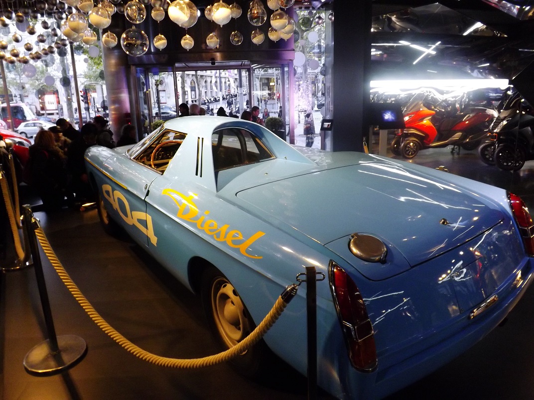 The showcase of flashy car models at galleries along the Champs Elysées