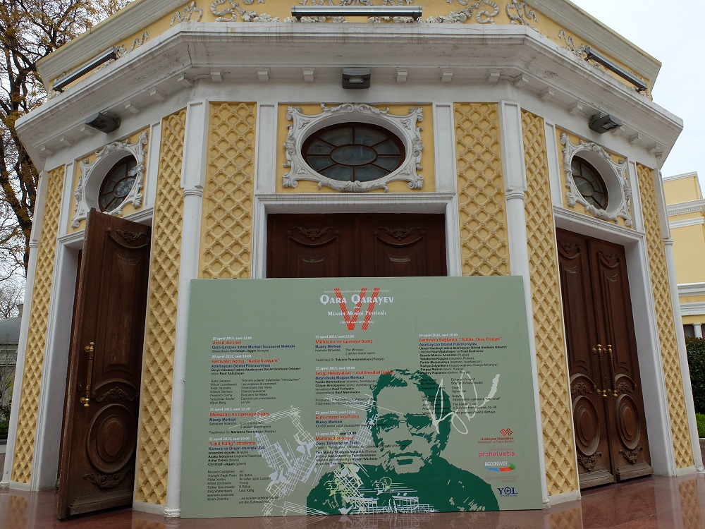 It was a thrill to discover the huge sign by the façade announcing the week-long festival program, dedicated to Qara Qarayev. And of course more of a thrill to find the door to the foyer open quite early in the morning only followed by a short disappointment when I realized that the ticket office was not yet open.