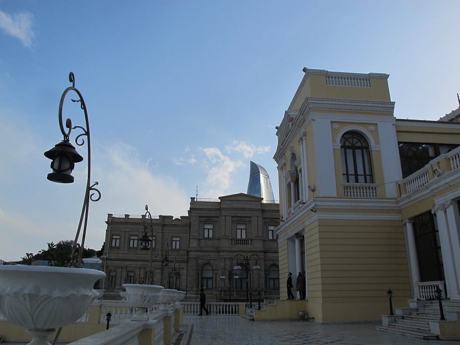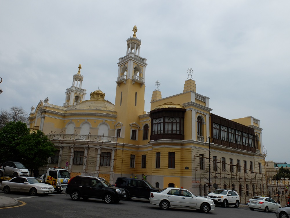 The awe-inspiring yellow building of the Azerbaijan State Philharmonic Hall is no doubt a landmark of the city. Designed by the Armenian architect Gabriel Ter-Mikelov, the exterior is Italian Renaissance and the interior is German Rococo. Apparently the design was inspired by the architectural style of Monte Carlo Casino buildings, particularly l’Opéra de Monte-Carlo. The building, I have read, served many purposes since its construction. Once used as for banquets and entertainment by Baku’s wealthy, it served as a place for public rallies during the Russian Civil War until 1936, when it was reorganized into a residence for the Philharmonic society to promote Azerbaijani classical and folk music.